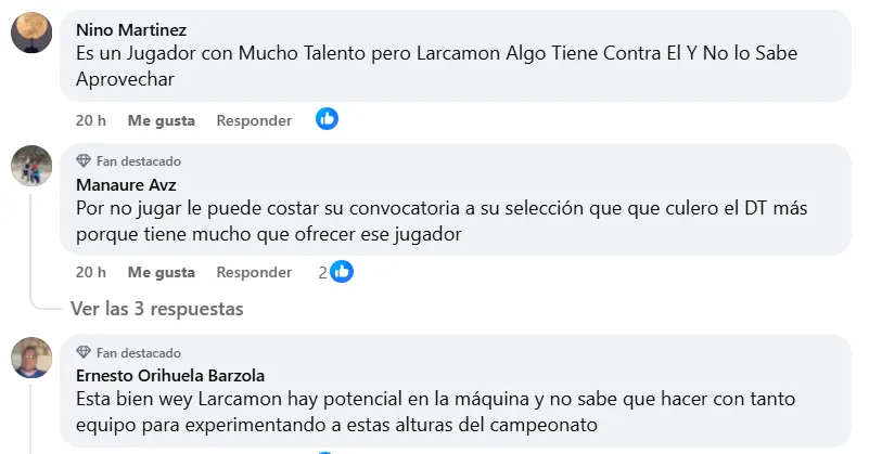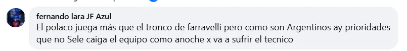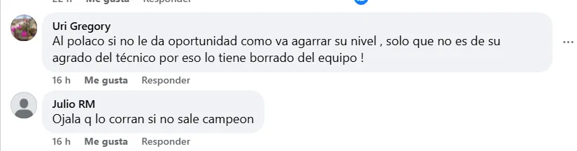 “Al polaco si no le da oportunidad como va agarrar su nivel, solo que no es de su agrado del técnico por eso lo tiene borrado del equipo!” o “Es un jugador con mucho talento pero Larcamón algo tiene contra él y no lo sabe aprovechar“, fueron otras reacciones.