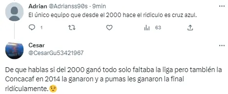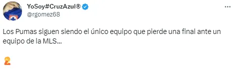 Ante el triunfo de León por Concachampions, la afición de Cruz Azul se mostró muy activa a la hora de trollear a los Universitarios. Con memes y contundentes opiniones, le recordaron que es el único equipo mexicano que cayó ante los de la MLS y que es el que perdió en las últimas dos finales, siendo el único con esa cantidad de derrotas (también lo hizo en 2005 contra Saprissa).