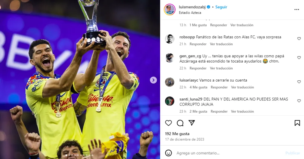 De esta manera, la afición de Cruz Azul no dudó en señalar a los colores del alcalde como el motivo principal por el que habría clausurado el Estadio Azul. “Uy, tenías que apoyar a las wilas, como papá Azcárraga está escondido te tocaba ayudarlos“, fue uno de los comentarios en la publicación de Mendoza.