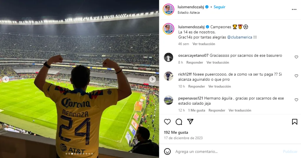 Incluso, sus fotos con la camiseta azulcrema y festejando el título 14 del América, en diciembre del 2023, que él mismo publicó en su cuenta de Instagram, lo delataron e hicieron desatar la polémica en las redes sociales, luego de que comenzaran a circular estas postales.