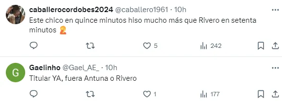 De esta manera, la afición cementera no dudó en pedir de inmediato la titularidad de su canterano. Incluso, sin importar que quien tenga que ir a la banca para cederle su lugar sea uno de los grandes referentes en el cuadro de Martín Anselmi: Uriel Antuna.