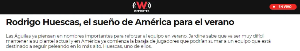 De acuerdo a la información exclusiva que brindó W Deportes, América está interesado en contar con los servicios del joven de 20 años a partir de la próxima temporada. “La directiva ya empieza a barajar nombres para sus posibles llegadas a Coapa y hay uno especial que se llama Rodrigo Huescas”, publicó.
