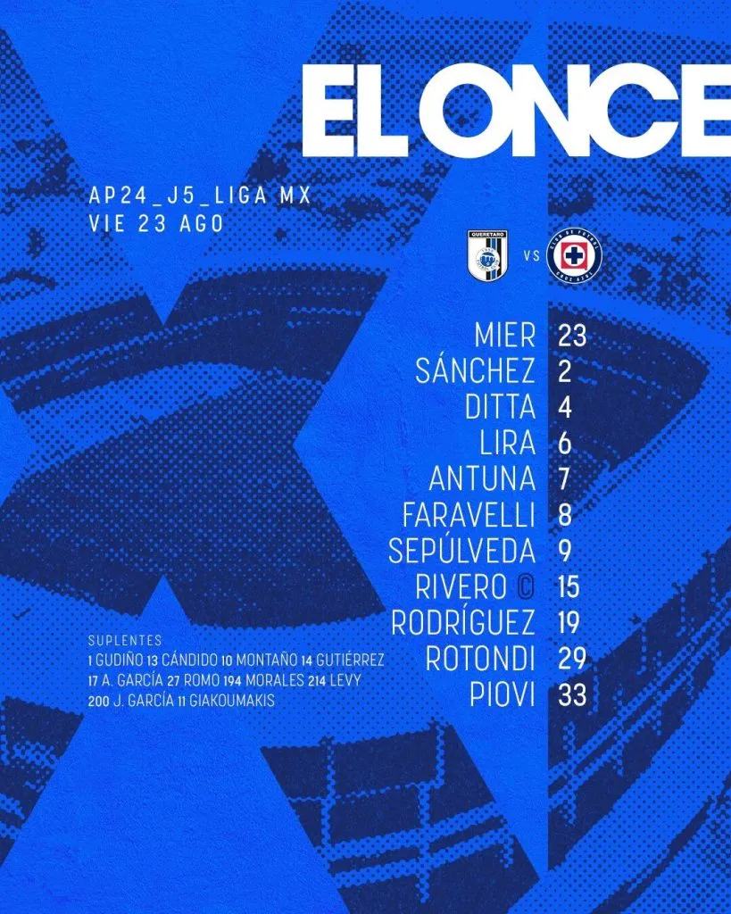 Alineación de Cruz Azul vs. Querétaro