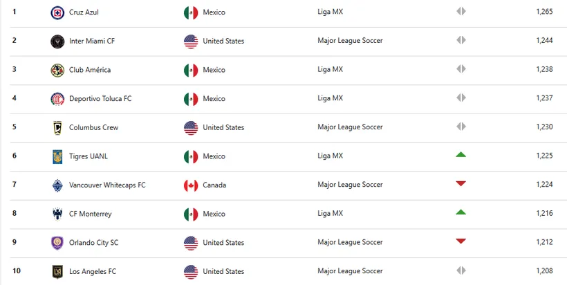 El ente internacional determinó que el cementero siga ocupando el primer lugar de la tabla, a partir de la constancia en el plano local pero también por su todavía reciente éxito en la Concachampions, la cual pudo ganar con mucha contundencia tras golear a Vancouver Whitecaps por 5-0 en la final.