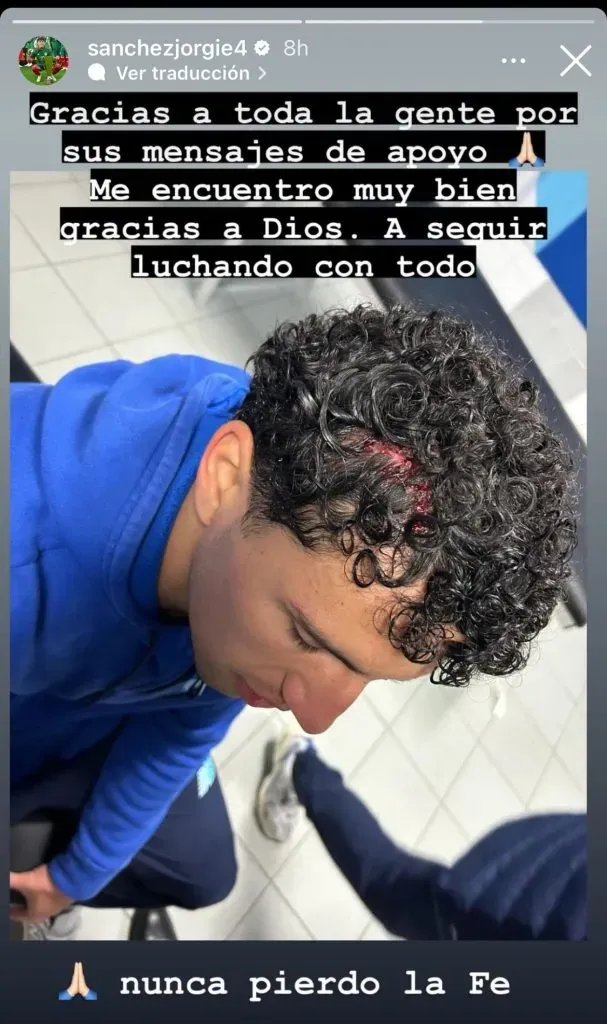 Fue el propio Jorge Sánchez quien actualizó su estado de salud, luego del golpe sufrido. A través de su cuenta de Instagram compartió una foto en la que se puede ver la herida que le quedó, así como un mensaje de agradecimiento a la gente que lo apoyó.