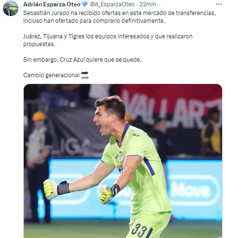 Según reportó el reportero cercano a La Máquina, Adrián Esparza Oteo, si bien existieron ofertas de Juárez, Tijuana y Tigres para comprarlo definitivamente, “Cruz Azul quiere que se quede (Sebastián Jurado)”. Esto, sin dudas, podría impactar en en la situación de Chuy.