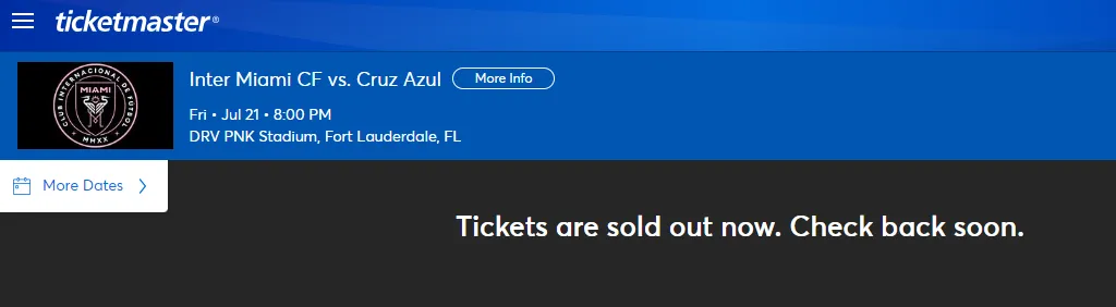 No obstante, para mala fortuna de los seguidores cementeros que soñaban con ver a Messi frente a Cruz Azul, ya no hay boletos disponibles para este partido a través del canal oficial, pues Ticketmaster ya colgó el cartel de “agotado” en su página oficial.