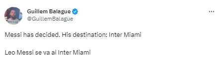 “Messi ha decidido. Su destino: Inter Miami. Leo Messi se va al Inter Miami”, fue el corto, pero contundente mensaje del periodista para adelantar el fichaje del siglo en la MLS; con lo cual también, el debut de Lionel Messi en su nuevo equipo frente a Cruz Azul podría ser una realidad.
