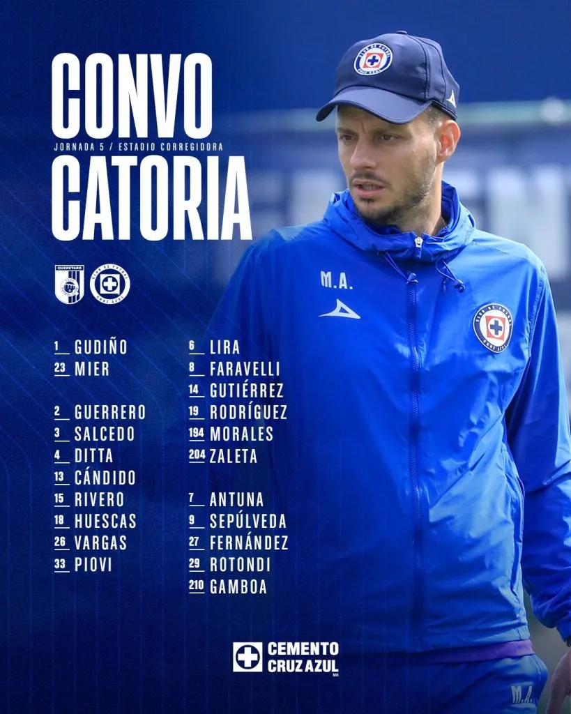 Así lo confirmó Cruz Azul al dar a conocer la convocatoria del estratega argentino para el duelo de esta tarde en el Estadio de La Corregidora en la que el jugador de 21 años de edad figura como la gran sorpresa.
