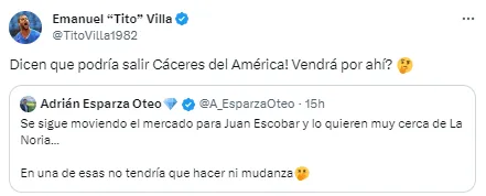 En ese sentido, el excementero Emanuel Villa añadió un dato que podría ser el movimiento que estaban esperando en Coapa para lanzar la oferta por el paraguayo: liberar una plaza de extanjero. Y es que con la posible salida de Sebastián Cáceres a Europa lo lograría.