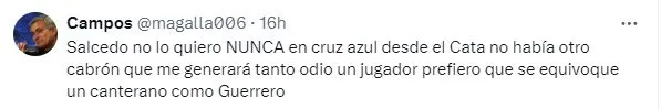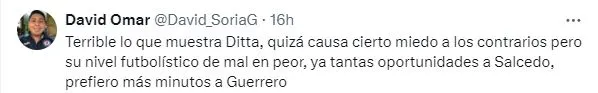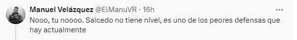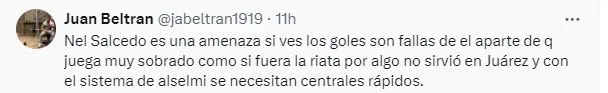Está claro que el equipo de Anselmi se terminó llevando la victoria, pero Illian Hernández fue un problema durante todo el partido debido a que Salcedo no lograba ganar ese duelo individual. A raíz de este contexto, la afición volvió a ser muy dura con el ‘Titán’ en redes sociales.
