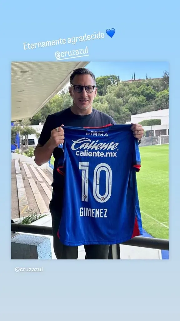 “Eternamente agradecido, Cruz Azul”, fue el mensaje que publicó Chaco Giménez a través de una historia en su cuenta de Instagram, presumiendo además una camiseta cementera con el legendario 10 y su apellido en el dorsal.