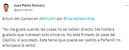 “No me gusta cuando las cosas no se hablan directo. Me hubiera gustado que hubiesen sido sinceros. Este tema (que pueda ser cedido a Peñarol) no entorpece la venta”, apuntó al respecto el presidente del club uruguayo.