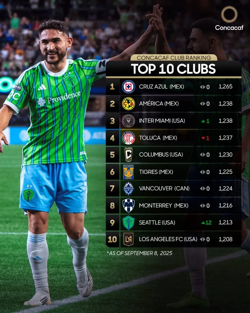 Curiosamente, gracias a ganar dicho torneo, Seattle Sounders pasó a ocupar la novena posición del ranking. Justamente fue este el cuadro que humilló a Cruz Azul durante la Leagues Cup, entregando una de las derrotas más dolorosas en la historia del club. Lo más sorprendente de la lista de Concacaf es que hay cinco equipos de la Liga MX y cinco de la MLS.