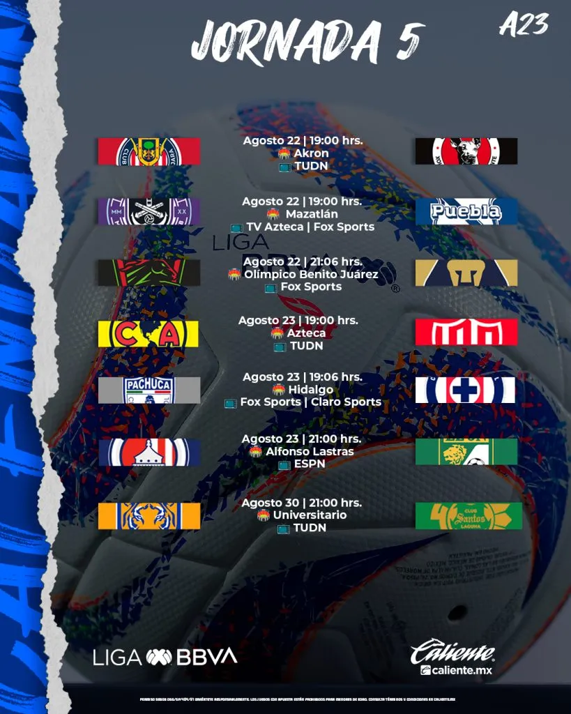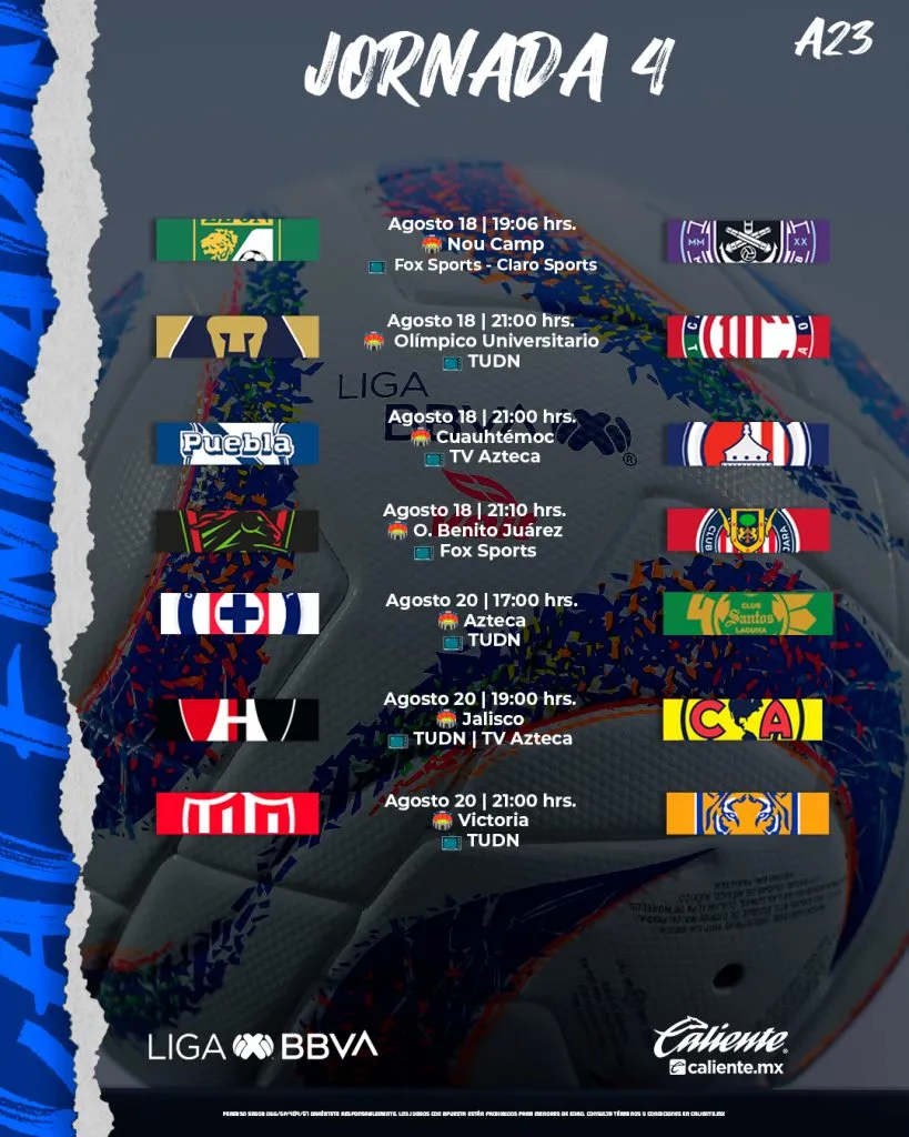 El calendario de las jornadas 4 y 5 de la Liga MX