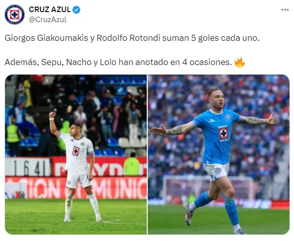 Además, Cruz Azul no dudó en presumir a sus goleadores, pues al momento son dos de sus jugadores los que se mantienen firmes en la pelea por el título de goles, con cinco tantos cada uno: Giorgos Giakoumakis y Rodolfo Rotondi. Mientras que Ángel Sepúlveda, Ignacio Rivero y Lorenzo Faravelli le siguen con cuatro.