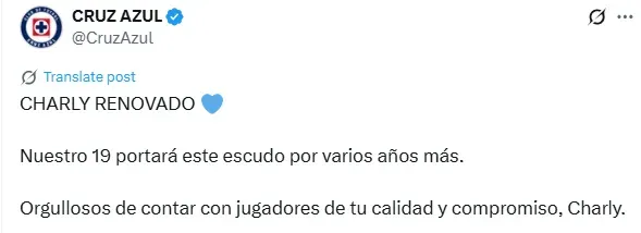 “CHARLY RENOVADO. Nuestro 19 portará este escudo por varios años más.”, escribieron desde las cuentas oficiales del club. Sin embargo, en el mensaje también se lee un mensaje a Giorgos Giakoumakis y Gonzalo Piovi, uno que ya se fue y el otro que está a poco de abandonar la institución.