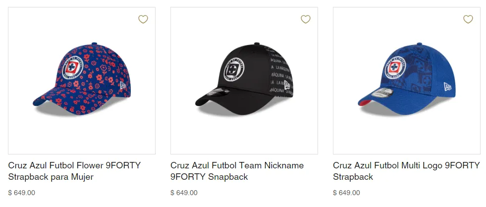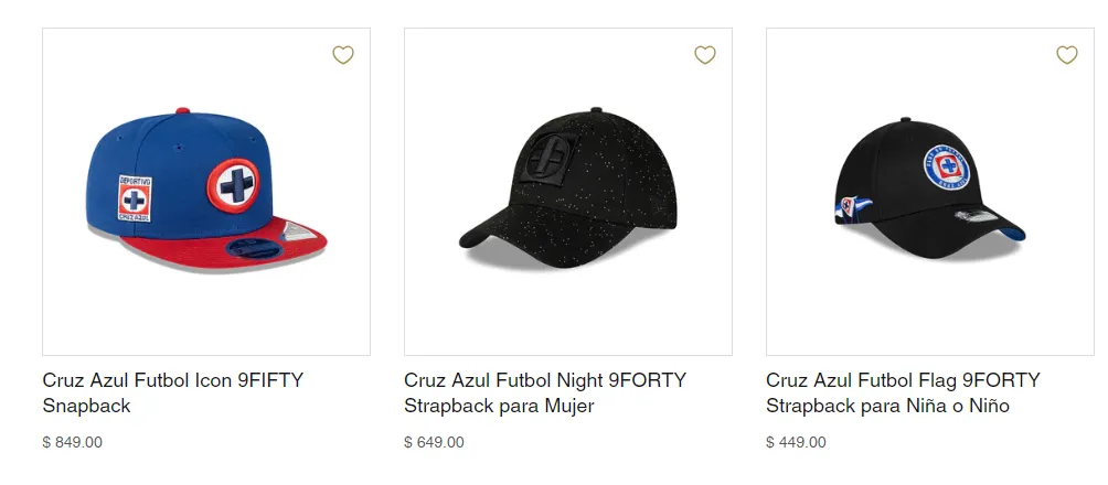 La mayoría de los modelos que presumió La Máquina en sus redes tienen un costo de 649 pesos mexicanos, incluida la de mujer que causó furor; mientras que la gorra azul con el doble escudo tiene un costo de 849 pesos.
