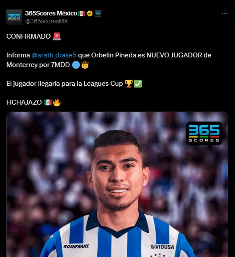 El futbolista llegaría a Rayados para jugar en el debut por el marco de la Leagues Cup, el próximo martes 30 de junio ante el Austin FC de la MLS. Al igual que Luis Romo, Pineda estuvo en el radar de Cruz Azul para un emergente retorno, aunque no con la misma fuerza o voluntad de que las cosas avancen.