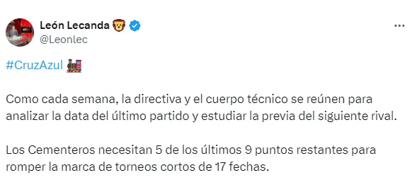 Y es que, el entrenador cementero no solo se juntaría con su cuerpo técnico para estudiar lo realizado en el último partido y analizar al próximo rival, sino que además, en sus juntas semanales también estaría presente la directiva encabezada por Víctor Manuel Velázquez.