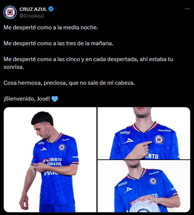 Mientras todos los periodistas aguardaban al ex River Plate en la sala de prensa, desde las redes sociales de Cruz Azul le dieron una cálida bienvenida. “QUÉ JUGADORAZO SE INCORPORA A LA MÁQUINA.BIENVENIDO A CRUZ AZUL, JOSÉ PARADELA. TU NUEVA CASA”, destacaron con mayúsculas, pero había más.