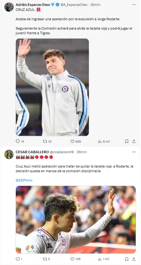 Allí, señalaron que la directiva de Cruz Azul ingresó oficialmente una apelación ante la Federación Mexicana de Fútbol para intentar anular la tarjeta roja de Rodarte. La intención es clara: ante la amenaza de que pueda perderse más de un partido de Liga MX, quieren eximirlo de una suspensión que consideran injusta.