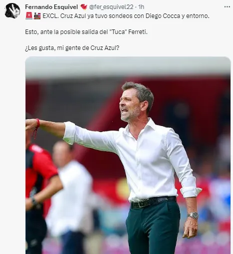 De acuerdo con información del periodista especializado en mercado de pases, Fernando Esquivel, la directiva de Cruz Azul inició sondeos con Diego Martín Cocca. En caso de que Ferretti deba ser despedido, el exentrenador de la Selección Mexicana de Futbol sería el apuntado.