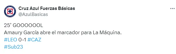 El atacante de 22 años arrancó como titular y disputó todo el primer tiempo. Fue al minuto 25 cuando el exjugador de Pumas se hizo presente para abrir el marcador con el único gol del encuentro y que resultó definitivo para el triunfo de Cruz Azul Sub 23.