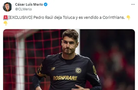 “Pedro Raúl, atacante brasileño de 27 años de edad, es nuevo jugador del Corinthians de su país. Según pudo conocer Súper Deportivo, los Diablos Rojos del Toluca alcanzaron un acuerdo con el apodado ‘Equipo del Pueblo’, quienes asumieron la tarea de repatriar al delantero”, se puede leer en la nota firmada por el reconocido periodista.