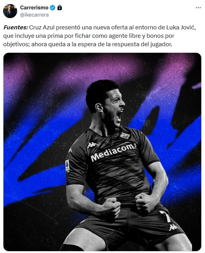 Si bien Jovic quedará libre a finales de junio tras finalizar su contrato con el AC Milan, pretende mantener el salario que percibía en Italia, unos tres millones de euros anuales, además de exigir una prima de fichaje. En ese sentido, Cruz Azul confía en que su nueva propuesta y el protagonismo que se le ofrece en el equipo puedan inclinar la balanza.