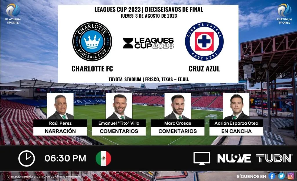 Cruz Azul se juega la vida esta tarde en la Leagues Cup 2023, cuando enfrente al Charlotte FC desde el Toyota Stadium, en el partido correspondiente a los Dieciseisavos de Final. Ya todo está listo para la gran cita.