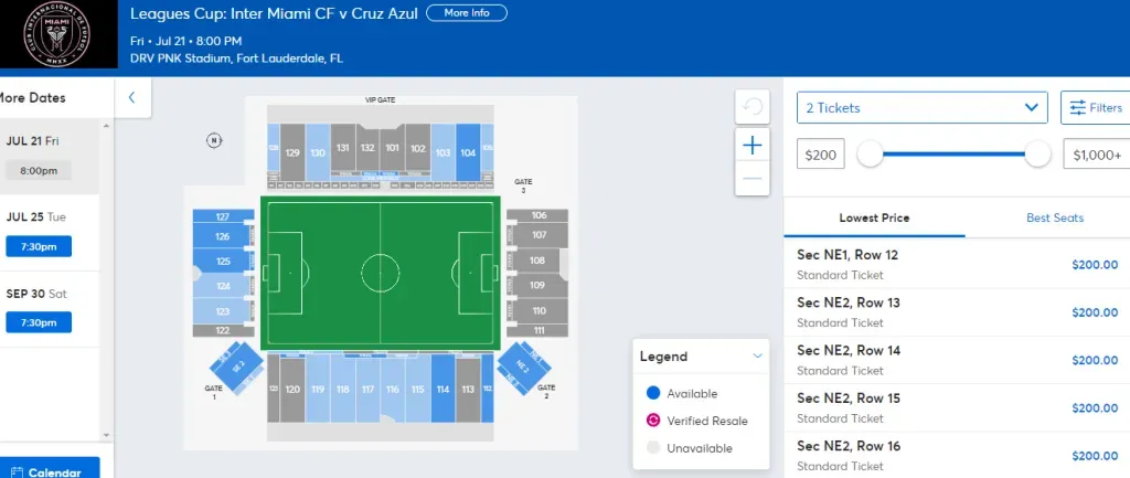 Los boletos para el encuentro por la Leagues Cup entre Cruz Azul e Inter Miami se encuentran disponibles a través de la plataforma de Ticketmaster. Los tickets más baratos que aún pueden adquirirse cuestan 200 dólares y corresponden a las gradas de las esquinas.