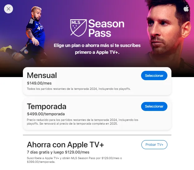 La afición cementera, que se encuentre en territorio mexicano, deberá pagar 149 pesos al mes o 499 dólares por toda la temporada. Además, existe una promoción de contar con el servicio gratis durante siete días, siempre y cuando haya una suscripción a Apple TV.