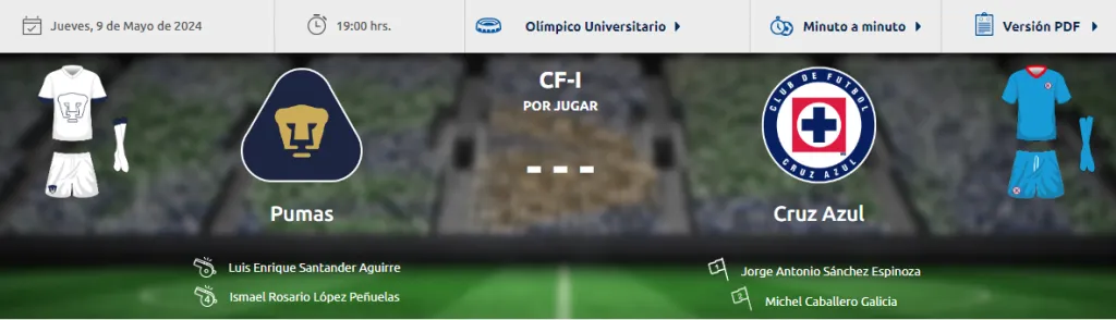 Así, el reporte desde la Federación Mexicana de Futbol confirmó el cuerpo arbitral que acompañará a Luis Enrique Santander para el Clásico de Liguilla entre La Máquina y los felinos, en el primer episodio en Ciudad Universitaria.
