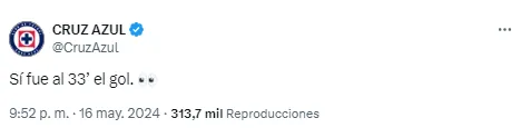 La euforia por el 33 y el sueño por la décima estrella están más vivos que nunca en Cruz Azul. Así, después del gol al minuto 33 con el que el equipo cementero tomó ventaja en la Semifinal, ante Monterrey, desde La Noria se lanzó un nuevo guiño para conectar con la afición.