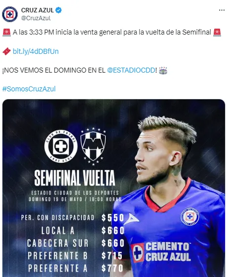 Hay que destacar que luego de que Cruz Azul se sumara a la euforia por el número 33, no dejaron de caer los guiños desde La Noria. Y es que, el equipo cementero abrió la venta de boletos para el partido de Vuelta de la Semifinal en un horario inédito.