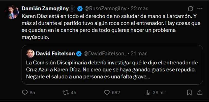 Otros analistas deportivos, como Damián Zamogilny, lamentaron que se intente desviar la atención hacia la labor arbitral en lugar de señalar el comportamiento del DT. El “Ruso” calificó estas críticas como perjudiciales para el futbol, asegurando que solo buscan generar una polémica innecesaria sin aportar un análisis real.