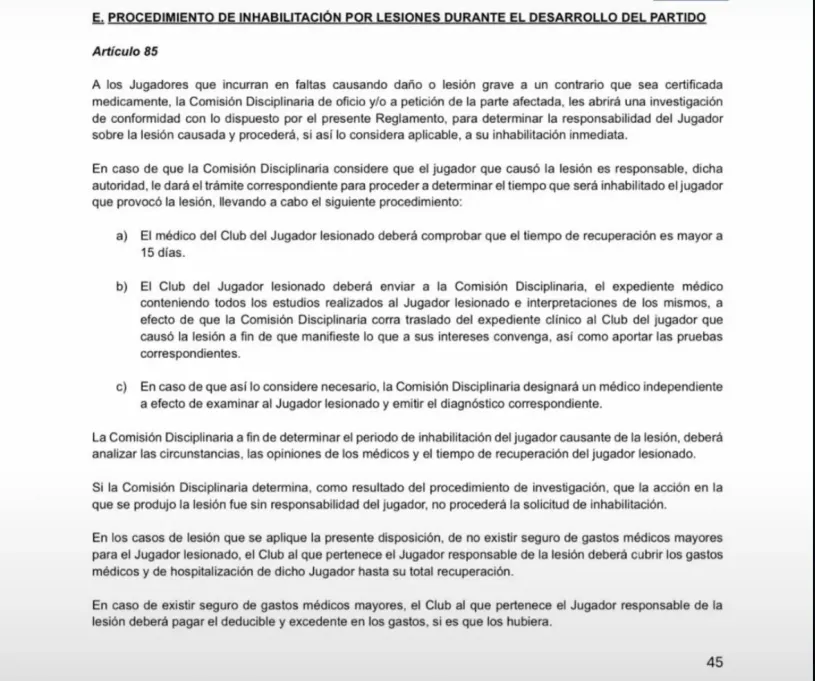 La fractura de Mier además agrava la situación de Carrasquilla. Aunque la falta no haya tenido intención maliciosa, el reglamento no distingue intencionalidad cuando el resultado es una lesión severa producto de una entrada temeraria. Eso abre la puerta a un castigo retroactivo.