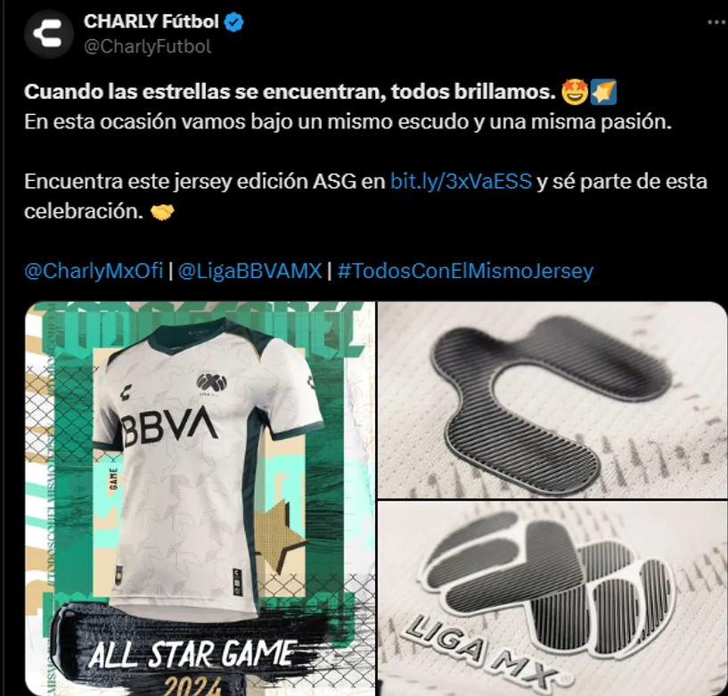 El jersey que usará el equipo de estrellas de la Liga MX para el All-Star Game es de color blanca, con tonos verdes oscuros con marca de agua de estrellas en toda la camiseta. La misma busca emular de cierta forma a la bandera de dicha nación, pero con unos tonos elegantes y más sofisticados.