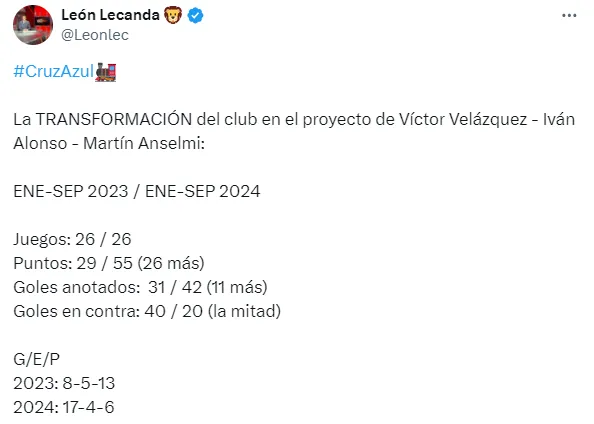 La gran prueba de ello apunta a lo que La Máquina ha cosechado desde su llegada, en comparación a lo que el equipo cementero registró en el 2023. Esto, completamente en números, por lo que todavía es más contundente el efecto que ha tenido en el club.
