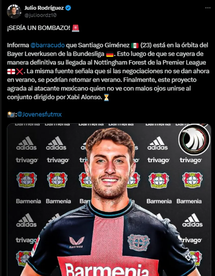 Replicado también por el colega Julio Rodríguez, la idea le gusta al delantero de 23 años: “A Santi Gimenez le gusta mucho ese equipo, pero tienen que esperar que se venda algún jugador”, afirmó Daniel Reyes en FOX Gol Mundial. Esto podría pasar en este mercado de pases o bien, en la venta de enero.