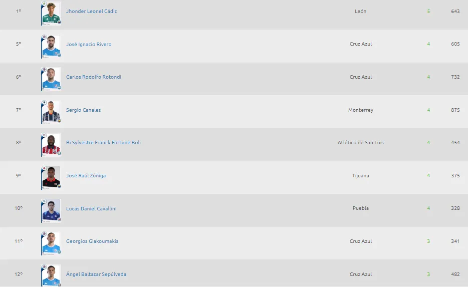 Nacho Rivero se mantiene en la pelea por la cima al llegar a cuatro anotaciones, mismas que Rodolfo Rotondi. Ubicados en el quinto y sexto lugar de la Tabla de Goleo, solo con un tanto por debajo de los cuatro líderes que registran cinco anotaciones: Germán Berterame, Paulo Dias, Henry Martín y Leonel Cádiz.
