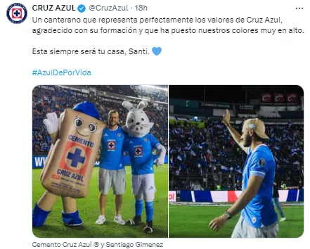 “Un canterano que representa perfectamente los valores de Cruz Azul, agradecido con su formación y que ha puesto nuestros colores muy en alto. Esta siempre será tu casa, Santi”, fue la publicación de la cuenta de Cruz Azul y que rápidamente fue relacionada como un mensaje para Huescas.