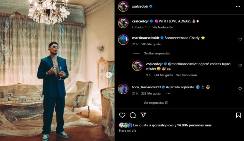 “Boooeeeeeeenaaa Charly”, expresó el argentino a un carrusel de fotografías que el zaguero mexicano posteó, en donde se lo ve con mucha elegancia vestido de traje. Al poco tiempo, el propio Salcedo le devolvió el elogio a su ex estratega en La Máquina: “Agarré cositas tuyas, míster”, expresó seguido de una serie de emojis.