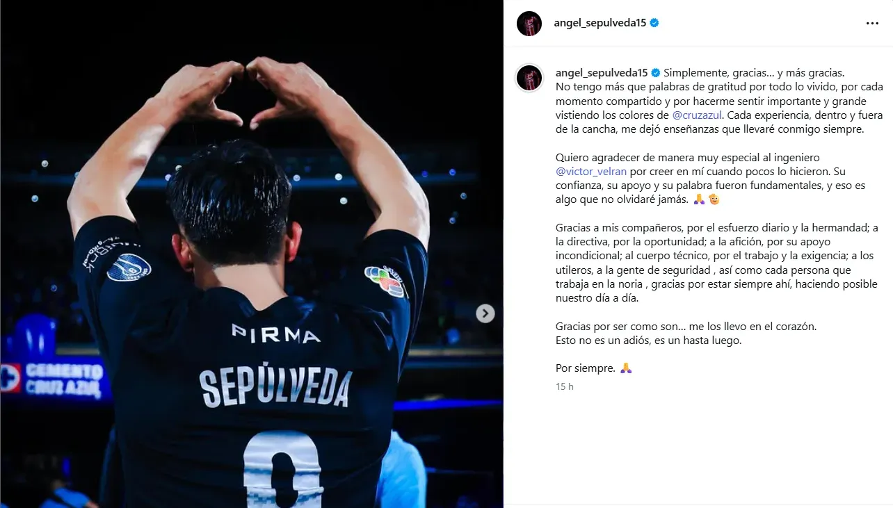 “Simplemente, gracias… y más gracias”. Así comenzó el texto que Sepúlveda publicó en su cuenta de Instagram, un mensaje que fue mucho más que una despedida protocolar. El atacante expresó su agradecimiento por cada experiencia vivida con la camiseta de Cruz Azul y dejó claro lo que significó para él defender esos colores.