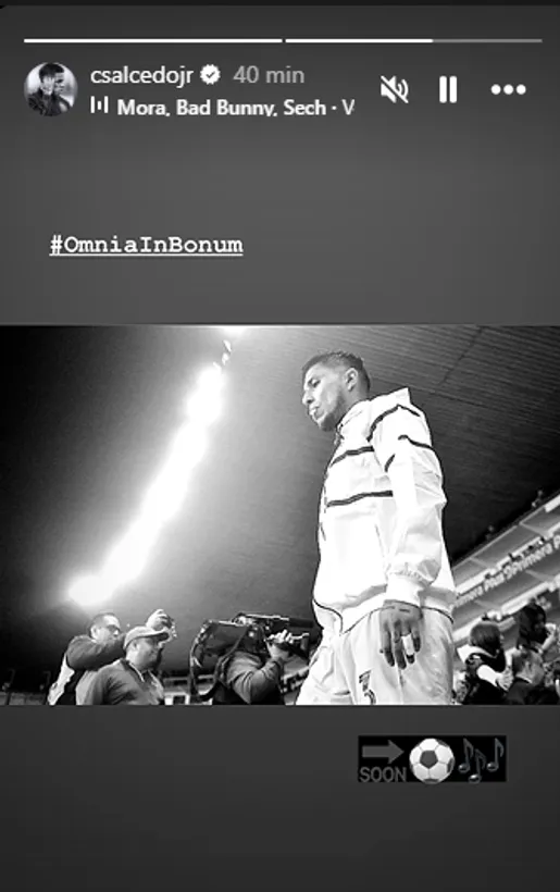 Una de ellas fue a raíz de una historia que subió a su cuenta de Instagram, en donde puso una fotografía suya acompañada de la frase “omnia in bonum”, que traducido al español quiere decir todo es para bien. Además, colocó tres emojis más que significativos: El de ‘Soon’ con una flecha hacia adelante, un balón de futbol y el signo musical que acompaña a la canción Mora, de Bad Bunny.