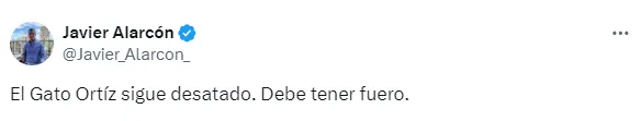 “El Gato Ortíz sigue desatado. Debe tener fuero”, estalló Javier Alarcón haciendo referencia al poder que tiene el silbante para quedar inmune, pese a sus polémicas decisiones. Y es que, lejos de ser castigado, el árbitro ha recibido el respaldo por parte de la Comisión de Árbitros.