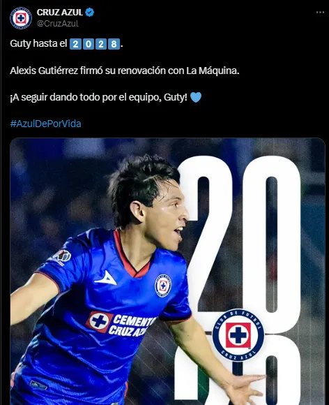 Más allá de esto, en las últimos días la directiva de Cruz Azul anunció la extensión del contrato de Alexis Gutiérrez, quien ahora se vinculará hasta junio de 2028. “Guty hasta el 2028. Alexis Gutiérrez firmó su renovación con La Máquina. ¡A seguir dando todo por el equipo, Guty!”, compartió el equipo de La Noria a través de sus redes sociales oficiales, junto a una foto del mediocampista.