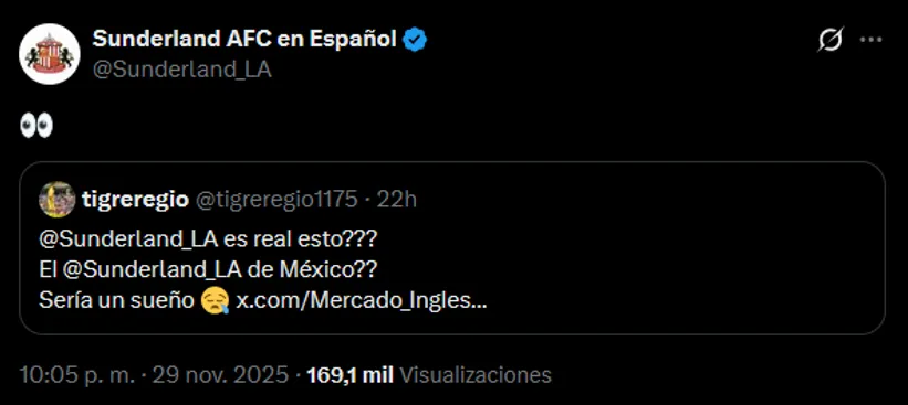 Mientras todo esto sucede, los Gatos Negros ya hacen lo suyo a través de las redes sociales y alimentan todavía más los rumores. Resulta que la cuenta oficial de Sunderland en español respondió la inquietud de uno de sus seguidores, que preguntaba si era real el interés para con el Bebote.