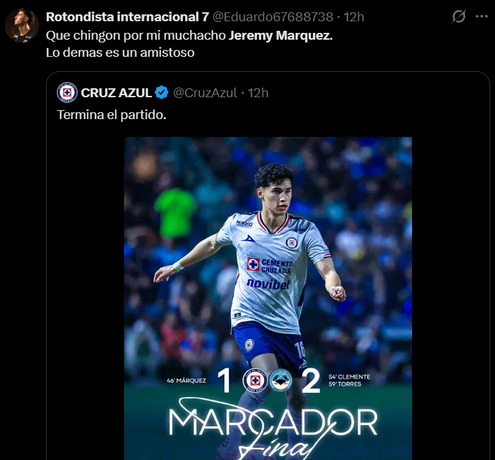 Mediante las redes como X, los usuarios identificados con La Máquina rescataron el buen desempeño del mediocampista celeste, resaltando su atrevimiento y capacidad para rematar desde media distancia (vía por la cual llegó la única anotación de Cruz Azul).